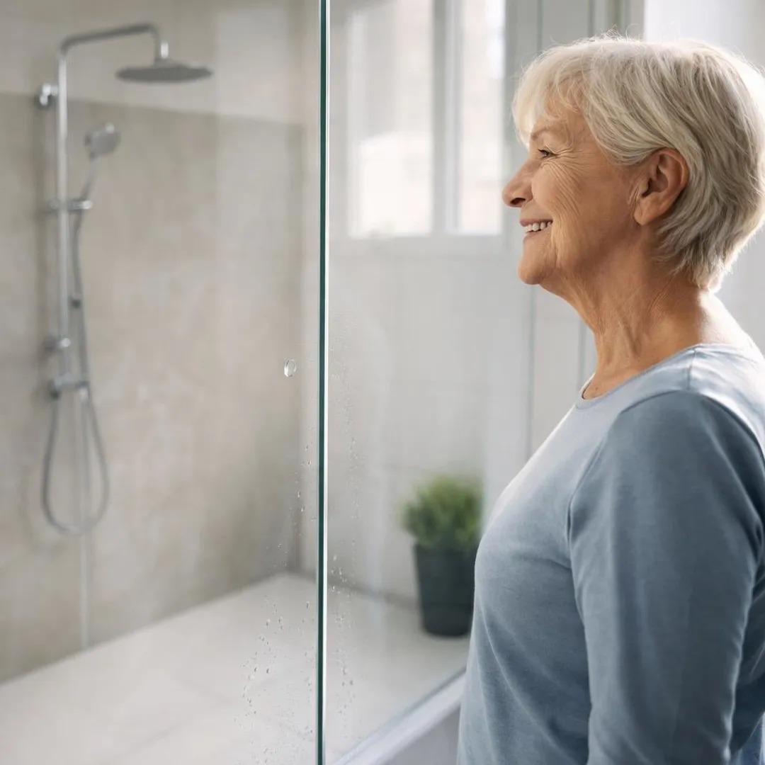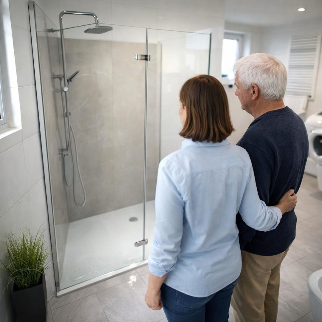 Der schnelle Luxus: Wanne raus – Dusche rein. inkl. Design SPC - Duschrückwände im Kompletten Duschbereich.
